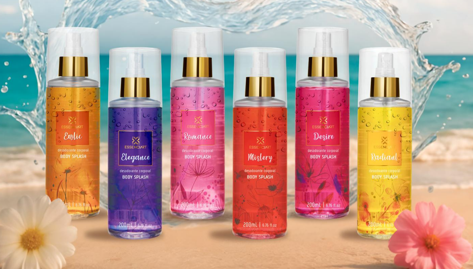 Pensando nessa proposta, a Essenciart desenvolveu uma linha de body splash que valoriza diferentes estilos e sensações. A coleção traz fragrâncias que transitam entre o delicado, o sofisticado e o marcante, permitindo que cada pessoa escolha o aroma que mais combina com o momento — ou até combine diferentes fragrâncias para criar uma assinatura olfativa única.