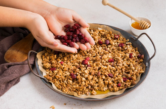 – 1/2 xícara de uva-passa ou castanhas;